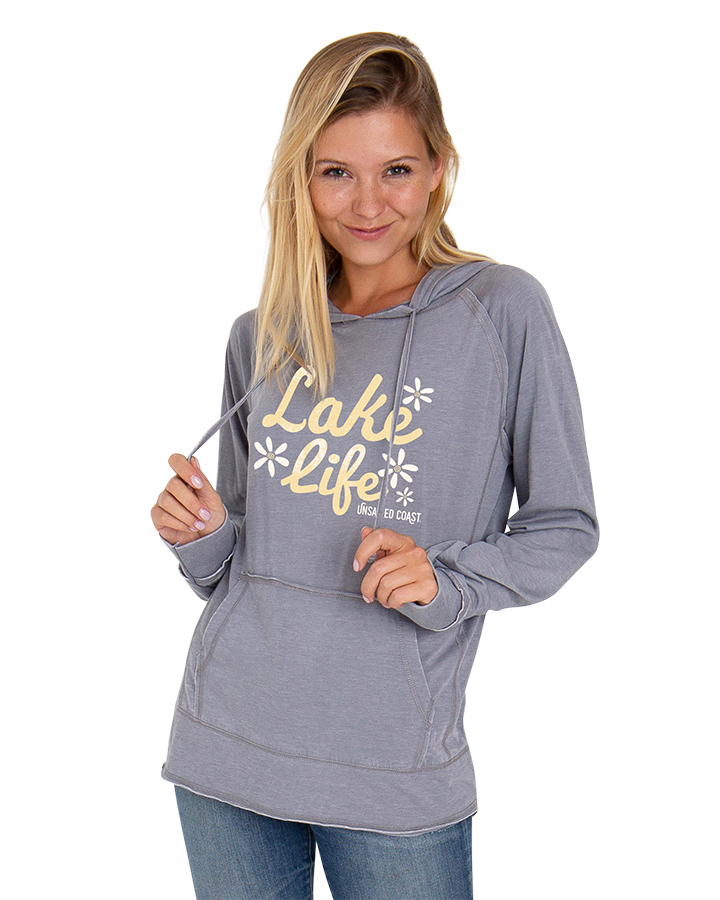 Lake life t-shirt hoodie is made from a silky soft cotton/poly jersey knit. Super cozy and comfortable.