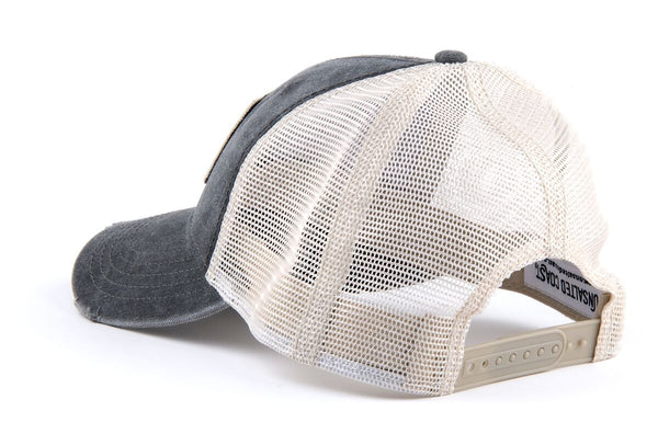 Two tone trucker hat Distressed bill Mesh Back Snap Back Washed Charcoal