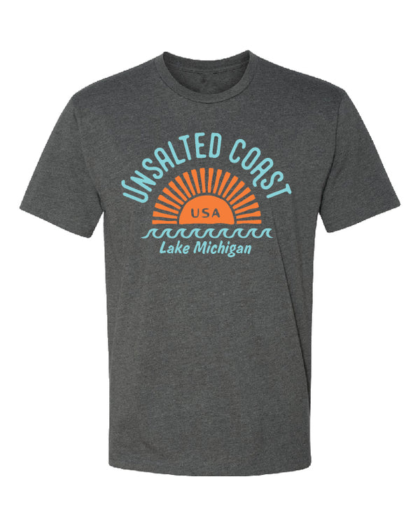 This is the perfect shirt to show off your love for sunsets and water. 4.3 oz., 60/40 combed ringspun cotton/polyester, 32 singles Fabric laundered
