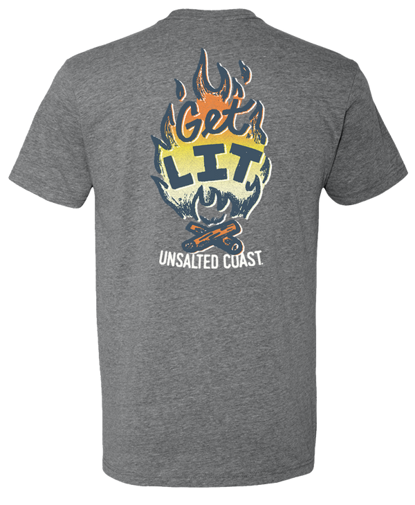 Enjoy the toasty bonfires with your friends and family in your Get lit tee 4.3 oz., 60/40 combed ringspun cotton/polyester, 32 singles Fabric laundered True to size fit