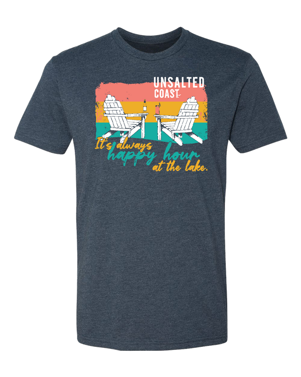 Every hour is happy hour at the lake! 4.3 oz., 60/40 Super soft combed ringspun cotton/polyester, 32 singles Fabric laundered True to size fit
