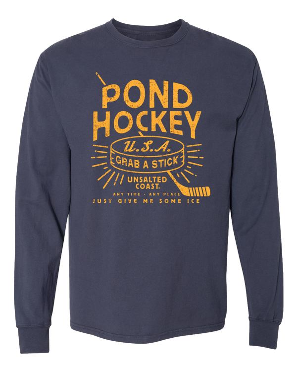 Our pond hockey fans will love this soft long sleeve t-shirt. It's already been laundered, so it has that worn in vintage feel  Incredibly soft L/S t-shirt with a worn in...