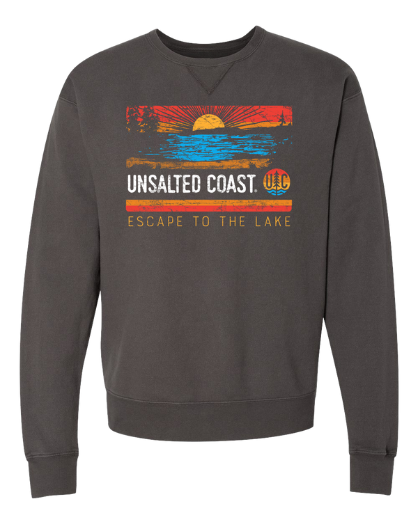 Butter soft and cozy, vintage style crew with our Escape to the lake design. This will be your softest crew that you own. 8.5oz., 80/20 ring spun cotton/ polyester blend. Vintage...