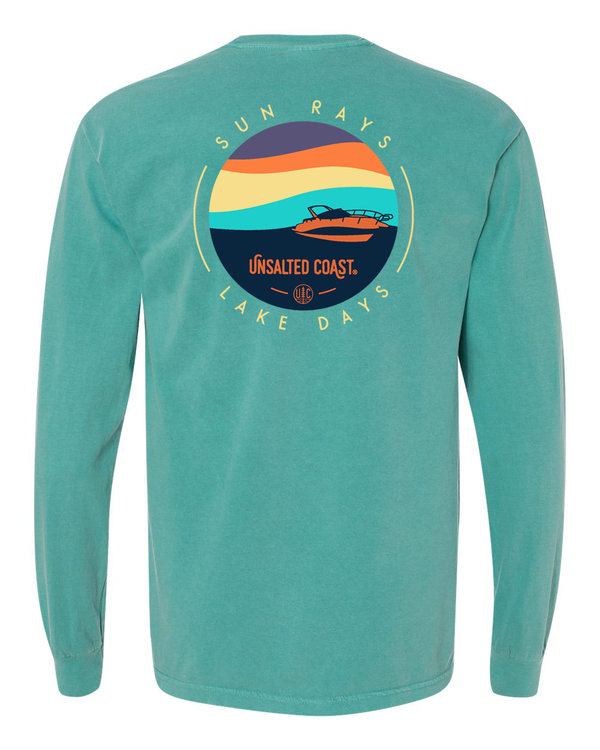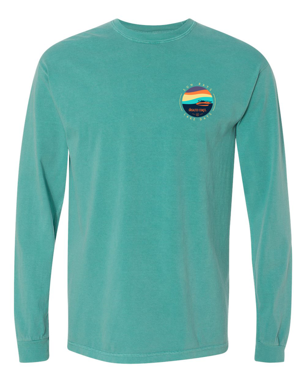 Every hour is happy hour at the Lake! Incredibly soft L/S t-shirt with a worn in vintage look. 6.1 oz. 100% soft ringspun garment dyed cotton Standard fit